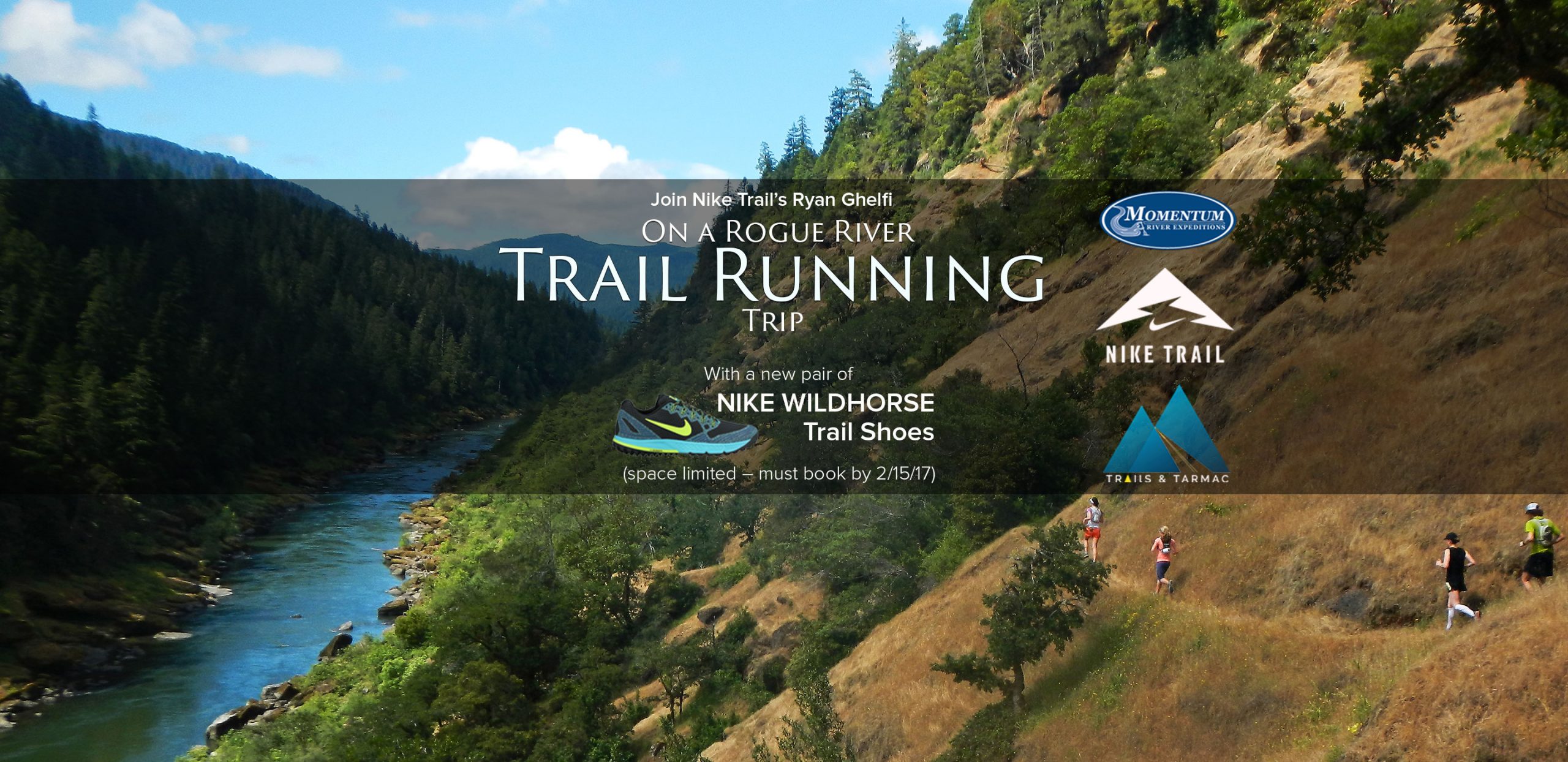 Join Nike Trail’s Ryan Ghelfi on one of the two Rogue River Trail Running Trips he hosts and get a pair of Nike Wildhorse Trail Shoes and a Trail Mug!