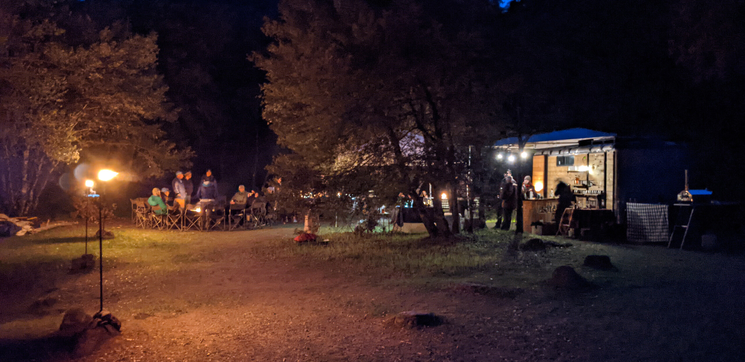 The sauna trailer, the fire pit, and the dining area are the hub and gathering area at our ‘Cal’ Salmon camps. Get off the river, jump in the sauna for a quick steam, take a hot open air shower and then change and join your friends at the bar for a post river drink and appetizer. When we say ‘innovative and comfortable camping’ we truly mean it.
