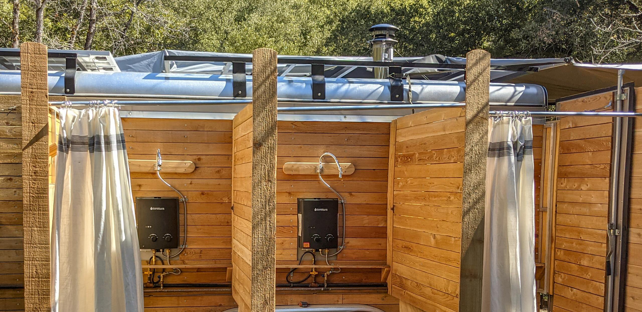 We set up our ‘Pop-up’ Safari Camp deep in the remote and rugged California Salmon River Canyon – right on the river and just above some of the country’s best class V whitewater. The camp is extremely remote, many miles from any cities, and it combines luxury camping, hot showers, a wood-fired sauna, and the Salmon River’s lush coastal forests and emerald green waters, to create an extremely unique ‘glamping’ style experience.