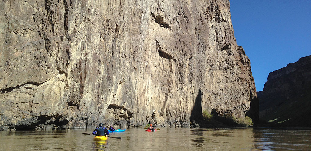Join the nationally recognized kayaking instructors at DeRiemer Adventure Kayaking and Momentum River Expeditions for guided hard shell kayaking and instruction on the Lower Owyhee. The river has been compared to Zion, Bryce, and Grand Canyon National Parks but in the end it probably defies direct comparisons. It is is a land of hot springs and hoodoos, of towering bluffs and windswept plateaus, of jaw dropping beauty and awe inspiring loneliness. The Owyhee is extremely remote, bizarrely beautiful, unpredictable, sometimes haunting, very wild, and rarely seen.