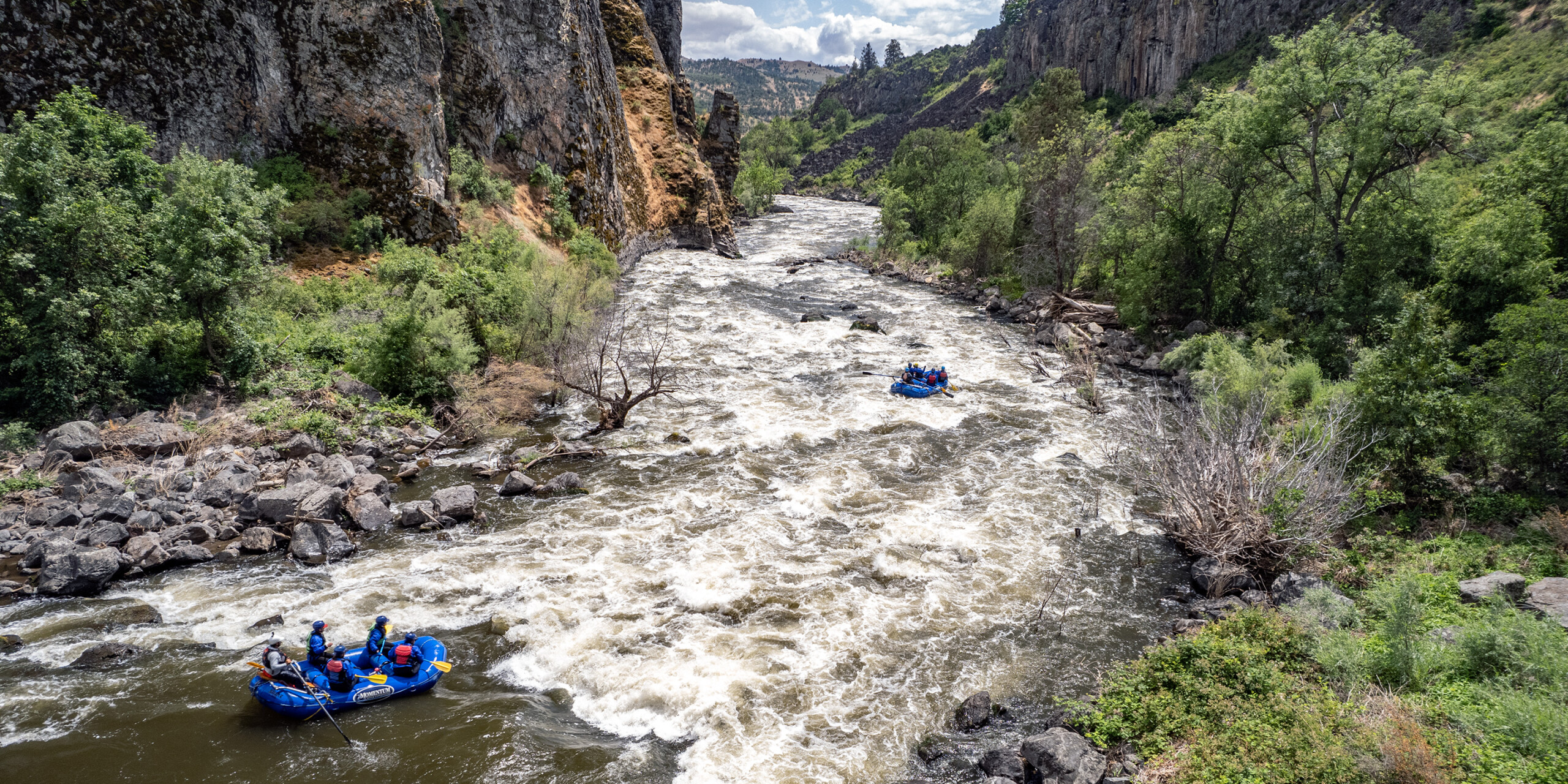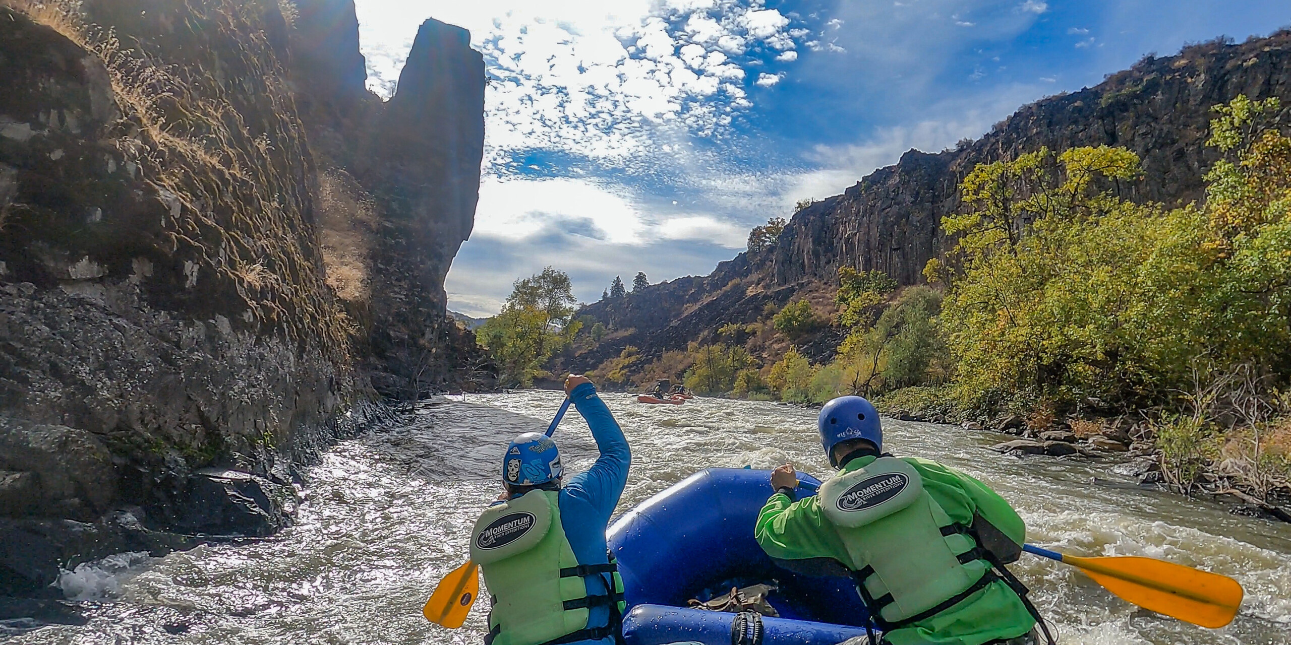 The canyon is back and the vertical columnar basalt walls quickly close in, the whitewater turns back on, and we pass between two dismantled dam sites into a section of river that had almost never been run before late 2024. The rapids are continuous with only one real break in the entire stretch – just long enough to truly admire the beauty of the canyon. And then we end with one of the biggest rapids of the entire trip, the mighty Kikaceki Falls.