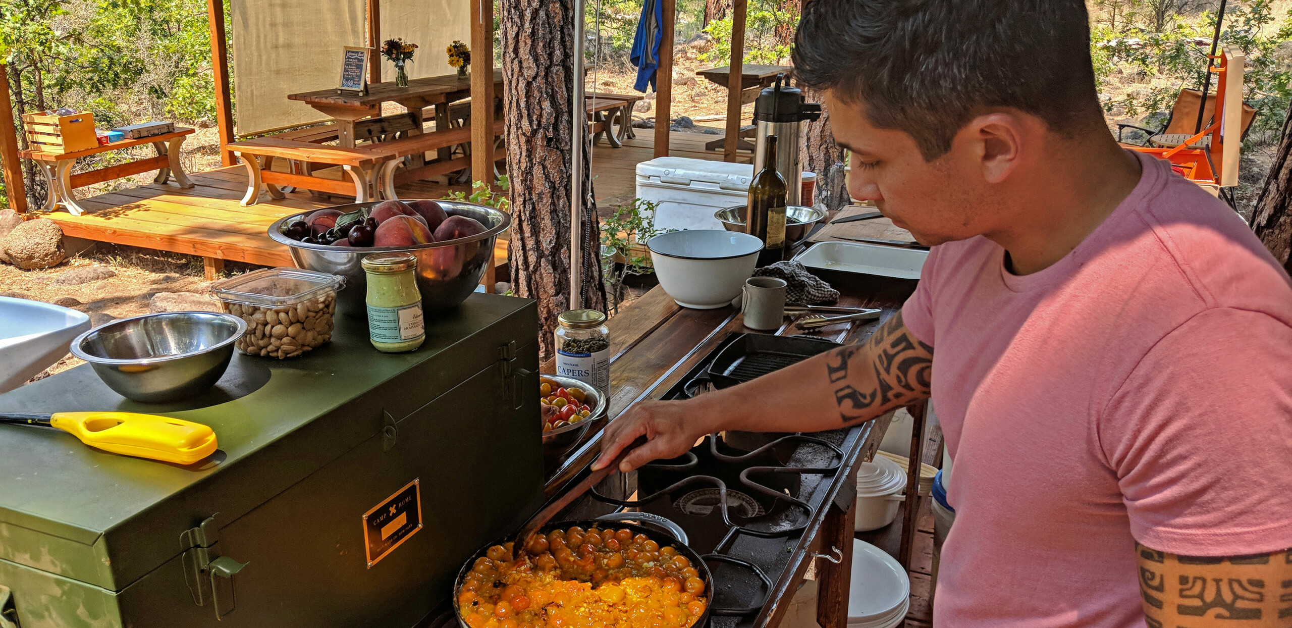 For the past 12 years we’ve partnered with Matthew Domingo, a classically-trained chef with a wide range of culinary experiences (director of culinary agritourism at Farm to Fork Event Co., executive chef & culinary director at Traeger Wood Fired Grills, chef & food stylist at Wilder Projects). Matthew’s passion and expertise in off-the-grid cooking and hospitality brings him back to Momentum’s riverside kitchens each spring, summer and fall.